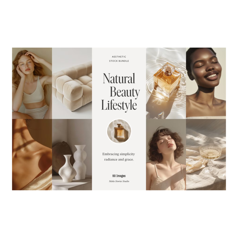 Elevate your brand's visual identity with this cohesive collection of contemporary and aesthetic stock images. The images range from beauty closeups, dreamy interior spaces, luxury sofas, and stylish studio portraits, to perfume, wine bottle vignettes, and natural skincare body images. Perfect to use as background images for branding, graphic design, and on social media, Instagram, Pinterest, Facebook, and Tiktok.
