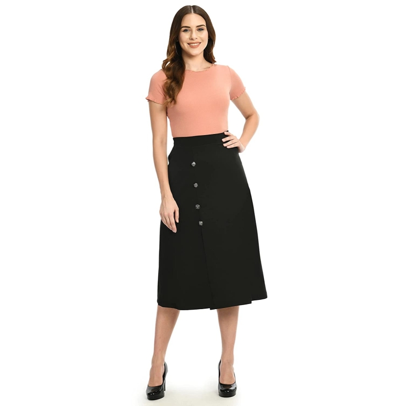 Midi Skirt With Slit & Buttons