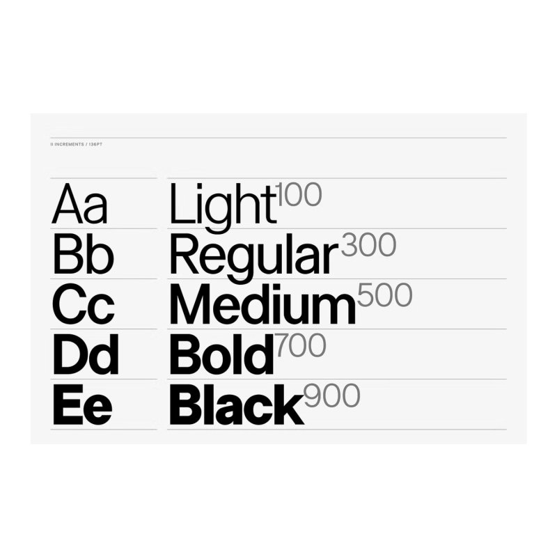 مستنيرة بالنسب والمبادئ الكلاسيكية الغريبة في النظرية الموسيقية ، ينتج عن II Increments Sans إيقاعي ومؤلف sans-serif. داخل شبكة منظمة ، يسمح التجويد والانسجام بين مبادئها الوظيفية وخصائصها العاطفية بالاستخدام في كل من أحجام النص والعرض.