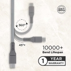 كابل لينوفو مايكرو يو إس بي خالي من تشابك الأراميد بطول ١ متر مع شحن 4 أمبير ونقل بيانات بسرعة 480 ميجابت في الثانية، عمر افتراضي معتمد يزيد عن 10000 انحناء، رمادي معدني