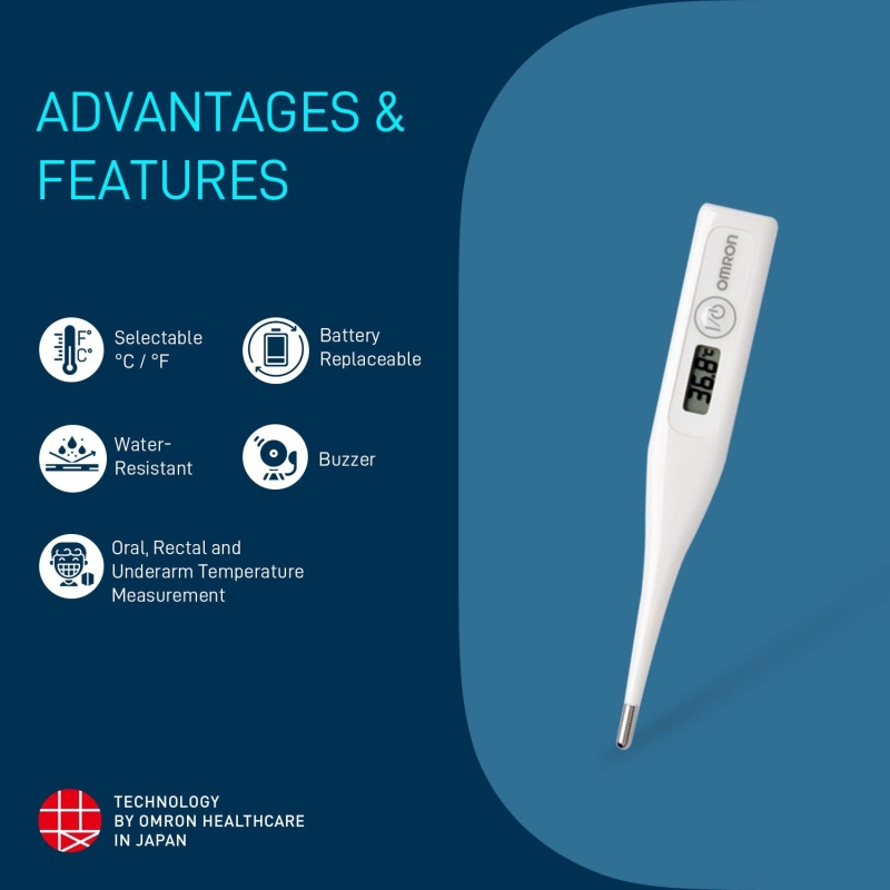 ميزان حرارة رقمي اومرون MC 246 مع قياس سريع لدرجة حرارة الفم وتحت الإبط