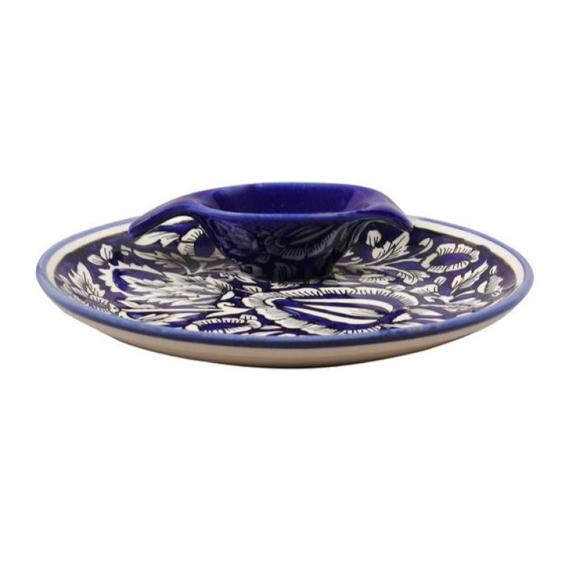 • The platter is set in a deep blue color, with wonderful abstract designs in white.