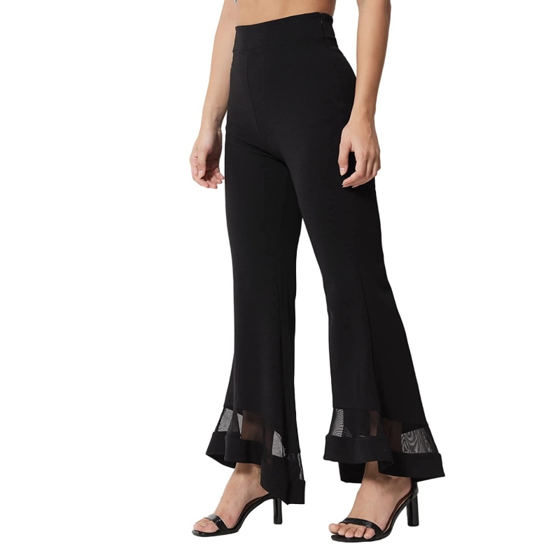 KOTTY Women Regular Length Jet Black Solid Trousers