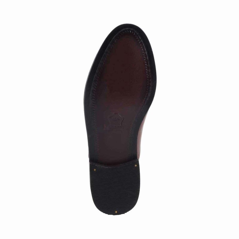 • A pair of tan brown round-toe formal oxfords, has central lace-ups