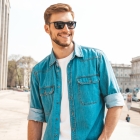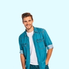 قميص كاجوال أزرق صلب غير شفاف ، يحتوي على ياقة منتشرة ، زر ، جيب 2 رفرف ، أكمام طويلة عادية ، حافة منحنية