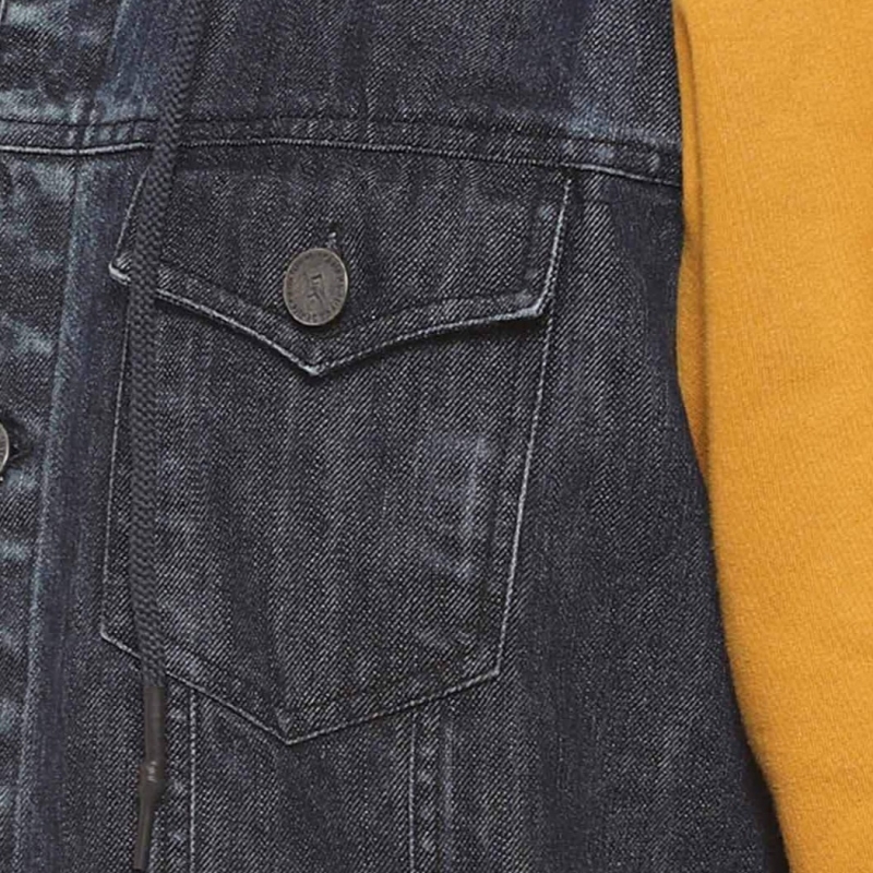 جاكيت جينز غشاش بالفحم مغسول بالفحم، مزود بغطاء رأس و4 جيوب وزر للإغلاق، أكمام طويلة، حافة مستقيمة، بطانة قطنية