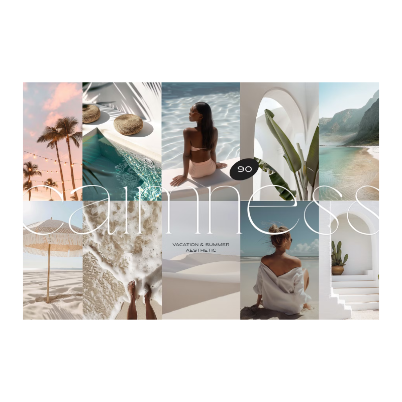 This collection of stock photos captures the atmosphere of the beach and summer holidays, presenting calm shades and a relaxed environment. Each image conveys a sense of peace and the freshness of the sea breeze, embodying the perfect beach day. Created using the latest stunning AI technologies and hand-crafted.