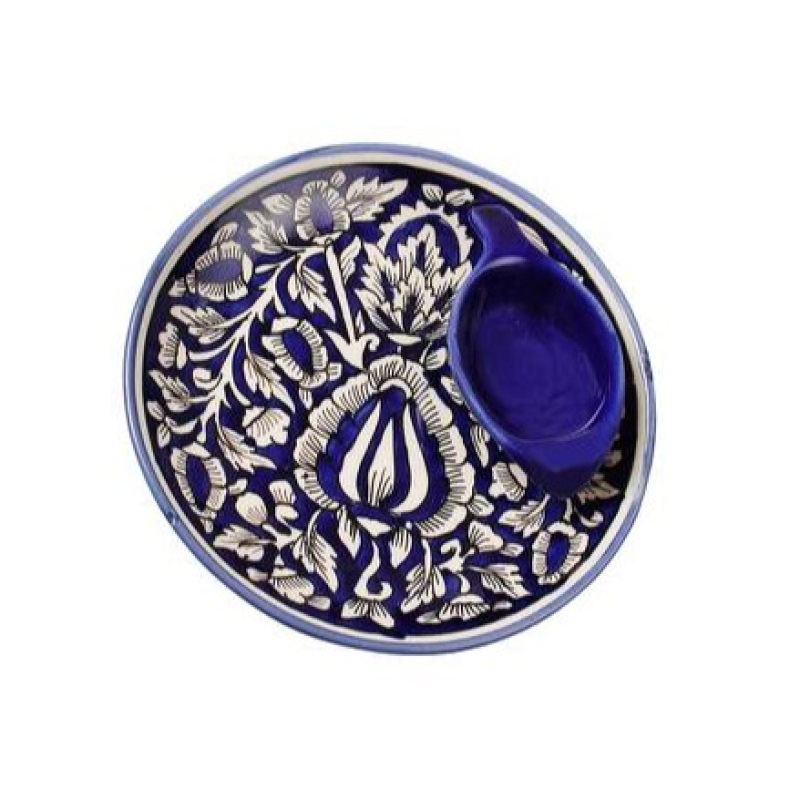 • The platter is set in a deep blue color, with wonderful abstract designs in white.